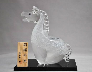 ガラス・クリスタル 干支置物 開運白馬(午・うま)