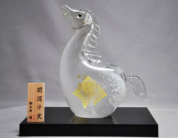 ガラス・クリスタル 干支置物 開運馬(大)(金彩)(午・うま)