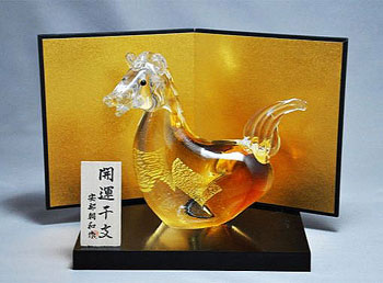 ガラス・クリスタル 干支置物 開運馬(大)(金彩)(午・うま)