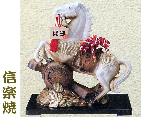 1200年の伝統を持つ信楽焼の作品です。開運札が付いてとても縁起の良い置物です。  品番 uma-7