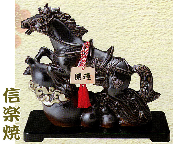 信楽焼 干支置物 開運俊馬(黒・小)(午・うま)