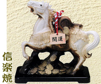 信楽焼 干支置物 開運小槌白馬(午・うま)