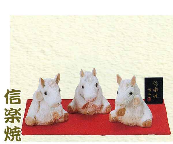 信楽焼 干支置物 白馬(トリオ)(午・うま)